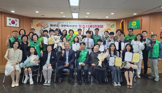 국민독서경진대회는 독서문화 생활화 실천을 통한 시민 문화수준 향상을 위해 매년 개최되는 대회로, 올해 청주시 예선에는 지난 7월 1일부터 9월 3일까지 독후감과 편지글 총 190편이 접수됐다.