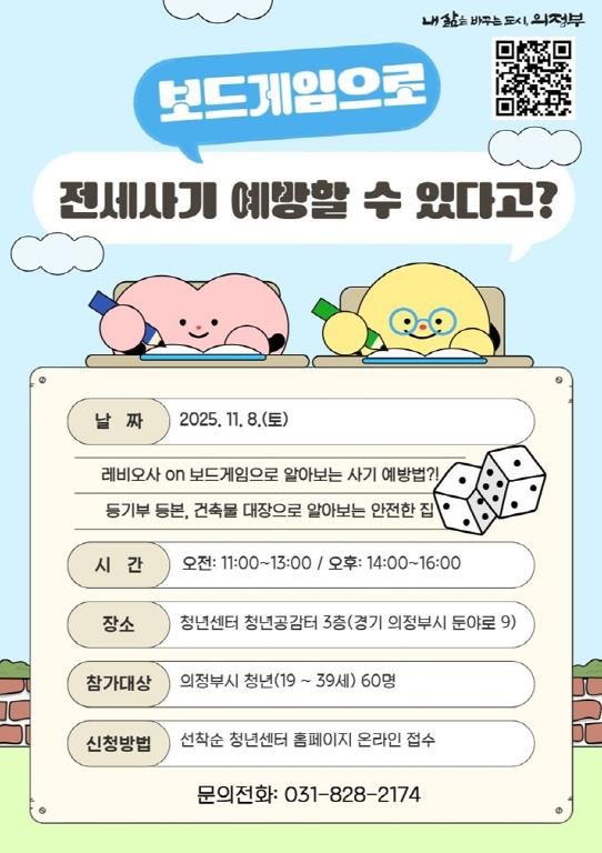 [ 중앙뉴스미디어 ] 의정부시는 11월 8일 운영 예정인 전세사기 피해 예방 교육용 보드게임 프로그램 ‘레비오사 보드ON’에 참여할 청년을 모집한다.