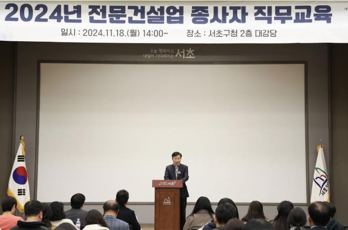 [ 중앙뉴스미디어 ] 서울 서초구가 23일 오후 3시 서초구청 2층 대강당에서 지역 내 178개 전문건설업체 대표자와 업무 관련자를 대상으로 ‘2025년 전문건설업 종사자 직무교육’을 실시한다고 밝혔다.