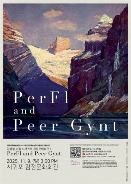 [ 중앙뉴스미디어 ] 서귀포시는 2025년 공연장 상주단체 육성지원사업의 일환으로, 11월 9일 오후 3시 김정문화회관 공연장에서 앙상블 퍼플의 플루트·타악기 앙상블 공연 '페르귄트'를 개최한다.