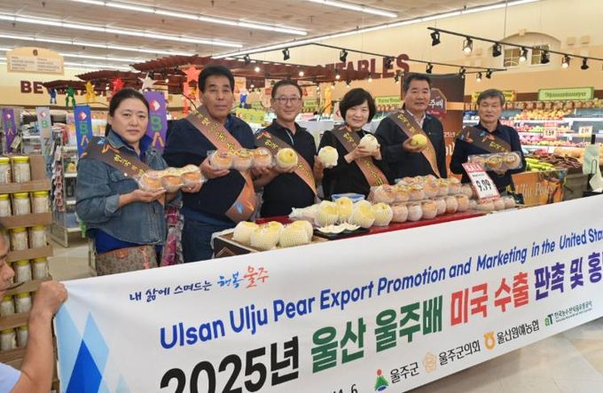 울주군은 미국 정부의 대미 관세부과에 따른 소비 둔화와 안전성 검사 강화에 따른 배 수출 환경의 어려움을 극복하기 위해 미국 현지에 ‘2025년 울주배 미국 수출 판촉·홍보단’을 파견했다.