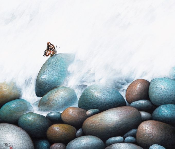 오랜 풍화에도 의연한 돌과 세월을 초월하며 내려앉은 나비의 모습에는 자연과 사물에 대한 작가의 통찰과 영감이 스며있다.