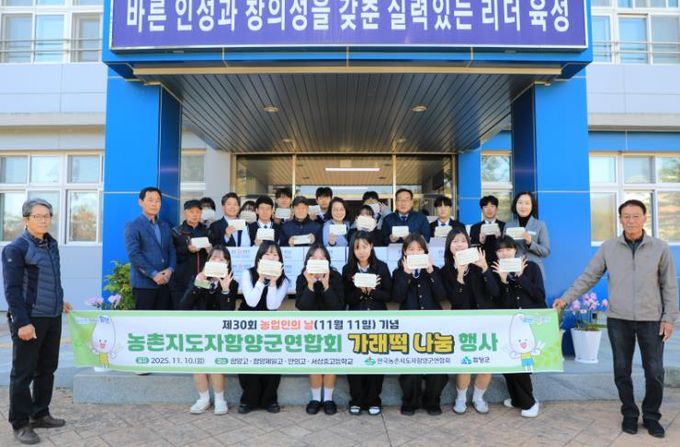 [ 중앙뉴스미디어 ] 농촌지도자 함양군연합회는 다가오는 ‘농업인의 날(11월 11일)’을 앞두고 11월 10일 관내 4개 고등학교를 방문하여 ‘사랑의 가래떡 나눔’ 행사를 개최했다.