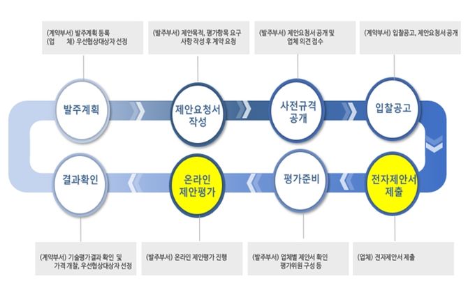 이번 온라인 평가는 PDF 제출 + 화상회의 발표를 결합한 전자적 방식으로 진행된다. 조달청 온라인 평가시스템을 활용해 사업부서는 사업 특성과 목적물의 속성에 맞춰 대면·온라인 방식을 자율적으로 선택할 수 있다. 입찰 공고 후 업체가 평가자료를 온라인으로 제출하면 평가위원회가 시스템상에서 정성평가를 진행한 뒤 결과를 확정하여 계약을 체결한다.