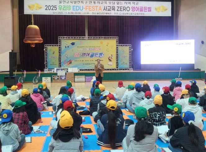 [ 중앙뉴스미디어 ] 울진교육지원청은 11월 8일 오전 9시, 울진군민체육관에서 울진 관내 초등학생 5~6학년 100여명을 대상으로 '2025 우리珍 에듀 페스타 ‘사교육 ZERO 영어골든벨’'을 개최했다.