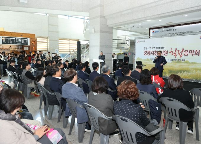 [ 중앙뉴스미디어 ] 강릉시는 11일 점심시간을 활용하여 시청 1층 로비에서 직원들을 위한 힐링음악회를 개최한다.