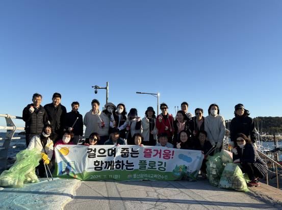 [ 중앙뉴스미디어 ] 울산교육연수원은 지난 11일 북구 정자동 일대에서 ‘걸으며 줍는 즐거움! 함께하는 쓰담 달리기(플로깅)’를 주제로 환경 정화 활동을 했다.
