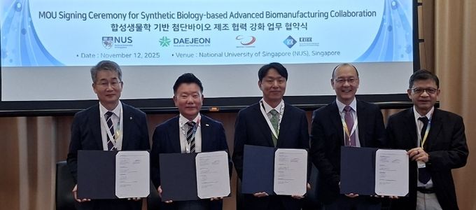 [ 중앙뉴스미디어 ] 대전시는 합성생물학 분야에서 세계적 선도기관인 싱가포르 국립대(NUS)와 첨단 바이오제조 공동연구 및 국제협력을 위한 업무협약(MOU)을 12일 체결했다.