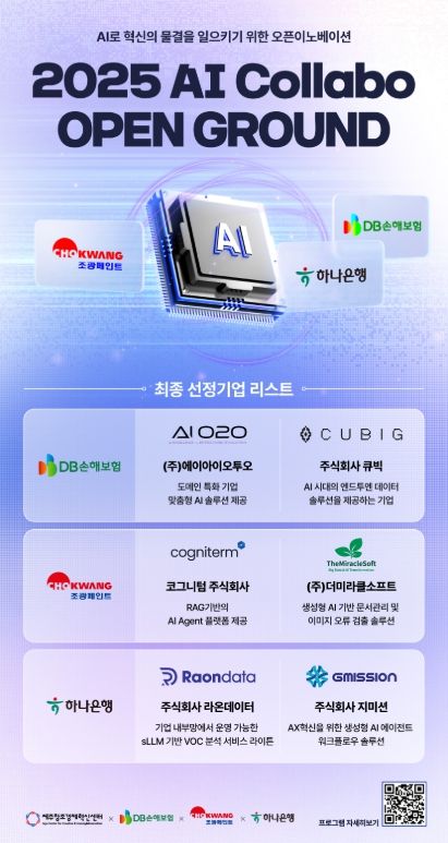 [ 중앙뉴스미디어 ] 제주창조경제혁신센터(대표이사 이병선, 이하 제주센터)는 DB손해보험, 조광페인트, 하나은행과 함께 추진하는 특화산업 오픈이노베이션 ‘2025 AI 콜라보 오픈그라운드 프로그램’을 통해 최종 6개 스타트업을 선정하고, 기술 테스트와 솔루션 개발을 통해 실질적인 사업화 협력에 나선다.