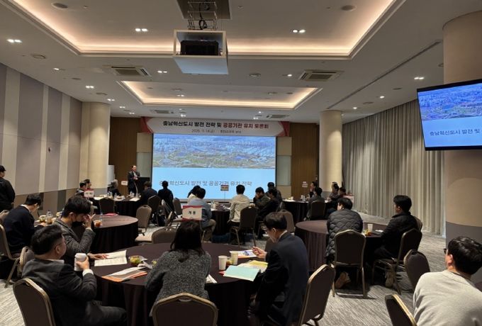 도는 14일 부여 롯데리조트에서 도·시군 공공기관 유치 담당 팀장 및 관계자 60여 명이 참석한 가운데, ‘2025년 충남혁신도시 발전 및 공공기관 유치 토론회’를 개최했다.