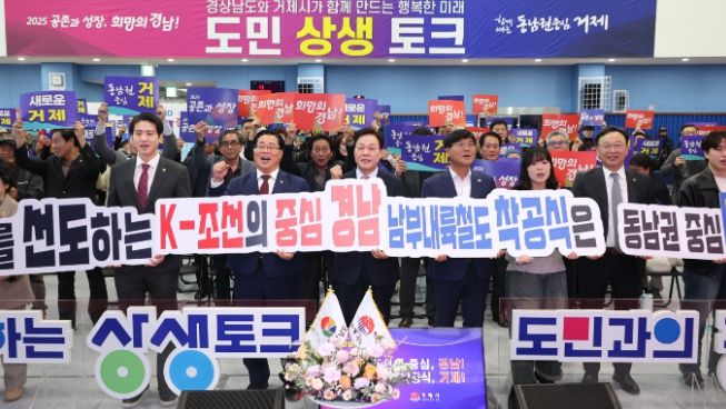 [ 중앙뉴스미디어 ] 경상남도는 18일 거제 반다비체육센터에서 열린 ‘도민 상생토크’에서 기업혁신파크, 광역교통망, 미래산업 등을 연계한 성장전략을 제시하며 지원 의지를 밝혔다.
