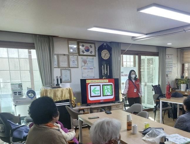 교육은 다가오는 겨울철을 대비한 낙상사고 예방법·낙상 예방 체조 실습 등의 생활안전 교육과 함께, 화재 발생 시 소화기 올바른 사용법·화재 초기 대응 및 대피 요령·화재 유형별 예방법 등으로 진행됐다. 동영상과 시청각 자료(PPT)를 활용해 어르신들이 내용을 쉽게 이해하고 생활 속에서 실천할 수 있도록 했다.