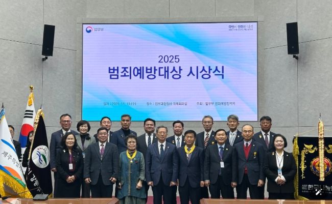 [ 중앙뉴스미디어 ] 제주특별자치도가 도민 참여형 범죄예방 정책의 우수성을 인정받아 법무부 주관 ‘2025 범죄예방대상’ 국무총리 표창을 19일 받았다.