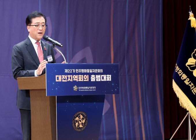 [ 중앙뉴스미디어 ] 대전시의회 조원휘 의장은 21일 대전시청에서 개최된 제22기 민주평화통일자문회의 대전지역회의 출범식에 참석해 축하의 인사를 전하며, 대한민국의 온전한 평화와 번영을 위해 힘써주실 것을 당부했다.