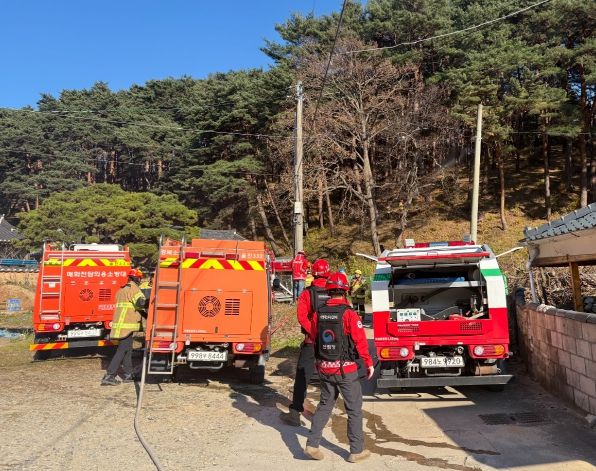 [ 중앙뉴스미디어 ] 울진소방서는 28일 울진군 기성면 소재 울진 평해황씨 해월종택에서 중요 목조문화재 및 산불진화 유관기관 합동소방훈련을 실시했다.