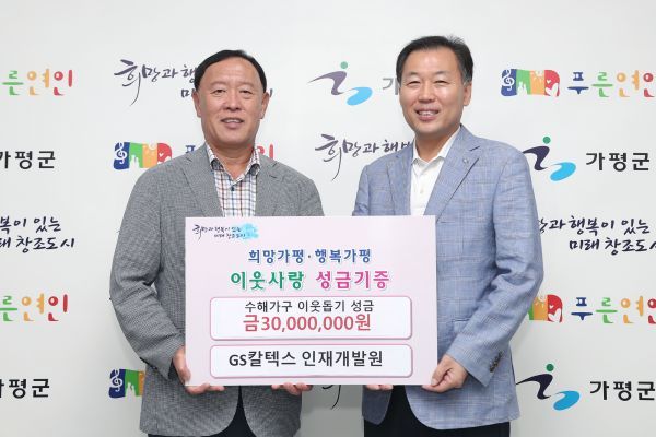 8월 14일 가평군청에서 거행된 수재의연금 전달식에는 GS칼텍스 허세홍사장을 대신해서 곽정준 인재개발원 원장과 김성기 가평군수가 참석했다.