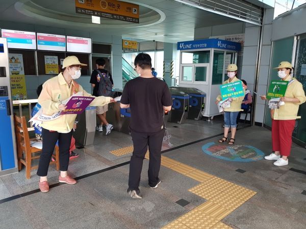 코로나19 감염 확산으로 8월 16일부터 사회적 거리두기를 2단계로 격상함에 따라 구성된 홍보단은 8월 20일부터 28일까지 동오마을, 경전철역사 등 다중이용시설을 중심으로 생활 캠페인을 전개한다.