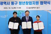 [ 중앙뉴스미디어 ] 울산 동구는 10월 14일 오전 11시 동구청에서 ‘2025년 청년창업 Start Up' 선정자인 ’모아라면땅‘ 김보예 대표와 ’보컬라운지 실용음악학원‘ 이형도 대표를 대상으로 창업지원금 지원 협약식을 개최했다. ‘청년창업 지원사업’은 청년 창업자의 발굴 및 육성하고자 맞춤형 컨설팅과 교육, 창업자금 등을 지원해 청년들의 안정적인 창업 기반을 구축하기 위한 사업이다. 지난 5월 참가자를 모집해 8월에는 교육 및 컨설팅 과정을 진행했으며, 최종 보고회를 통해 2명의 청년 창업자를 선정했다. 이번 협약을 통해 1위로 선정된 김보예 대표(모아라면땅)와 2위 이형도 대표(보컬라운지 실용음악학원)는 창업지원금을 지원받게 되며, 창업 아이템을 활용한 사회공헌활동도 함께 추진할 예정이다. ‘모아라면땅’은 오븐에 구은 라면땅을 수제로 만들어 판매하는 사업을 하며, 보컬라운지 실용음악학원은 보컬 레슨과 문화예술 공연을 제작하는 사업을 한다. 김종훈 동구청장은 “많은 청년 창업자들이 동구에 정착하여 골목상권 활성화와 지역 경제 발전에 기여하기를 바란다”라며 “앞으로도 청년들의 창업 도전과 성장을 위한 다양한
