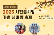 [ 중앙뉴스미디어 ] 사천시는 오는 16일 사천읍시장 공영주차장(특설무대)에서 ‘제15회 사천읍시장 가을 신바람 축제’를 개최한다고 14일 밝혔다. 사천읍시장 상인회 주최로 개최되는 이번 축제는 사천읍시장을 대내외적으로 홍보하는 것은 물론 상인과 고객이 한자리에 모여 축제를 즐기고 소통하기 위해 마련됐다. 이날 행사는 오후 6시 개막식을 시작으로 고고장구(문아카데미)의 역동적인 공연과 함께 황혜림, 채수빈, 김유화, 빅맨싱어즈(팝페라), 오드리걸즈 등 초청 가수들의 신나는 공연이 펼쳐진다. 또한, 사천읍시장의 대표 먹거리인 국수를 소재로 한 국수 빨리 먹기 대회, 장터 노래자랑 등 시민이 직접 참여할 수 있는 다양한 체험행사도 마련된다. 사천시는 이번 축제를 통해 전통시장 이용 활성화와 지역 상권의 재도약을 기대하고 있다. 박승배 회장은 “많은 시민과 관광객들이 축제에 오셔서 마음껏 즐기다 가시고, 특히 올해 주차 환경 개선사업으로 주차장이 확장되어 시장 이용이 더욱 편리해졌으니, 사천읍시장을 많이 찾아주셨으면 한다”고 말했다. [뉴스출처 : 경상남도사천시]