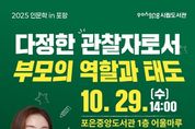[ 중앙뉴스미디어 ] 포항시립도서관은 10월 문화가 있는 날을 맞아 오는 29일 오후 2시, 포은중앙도서관 1층 어울마루에서 ‘인문학 in 포항’의 마지막 강연자로 이은경 작가를 초청해 강연을 진행한다. ‘인문학 in 포항’은 3월부터 10월까지 매달 마지막 주 수요일, 각 분야의 명사를 초청해 다양한 주제로 진행되는 포항시립도서관의 대표 인문 프로그램이다. 매회 높은 시민 호응을 얻으며 포항의 대표 문화강연으로 자리 잡았다. 이번 강연의 연사인 이은경 작가는 15년간 초등학교 교사로 재직했으며, 두 아들의 엄마로서 20년 가까이 쌓아온 교육 경험과 노하우를 바탕으로 부모와 자녀가 함께 성장하는 교육법을 전하고 있다. 지난 7년간 초등공부, 학교생활, 부모성장을 주제로 한 강연을 유튜브와 네이버 오디오 클립에 공유하며 초등 엄마들의 든든한 멘토가 됐다. 현재 ‘슬기로운 초등생활’이라는 이름의 유튜브 채널인 초등 교육 대표 콘텐츠의 운영자이며, 주요 저서로 ‘초등 자기주도 공부법’. ‘초등 매일 공부의 힘’. ‘나는 다정한 관찰자가 되기로 했다’ 등이 있다. 이번 강연의