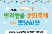 [ 중앙뉴스미디어 ] ㈜빅프렌즈가 주관하는 ‘2025년 양주시 반려동물 문화축제’가 오는 26일 옥정동 선돌근린공원에서 열린다. 이번 축제는 반려동물 보호자와 시민이 함께 즐기고 배우며, 반려동물 관련 산업과 단체가 교류하는 ‘반려동물 친화도시 양주’ 실현의 장으로 마련됐다. 특히 지난해보다 참여 기관과 단체가 대폭 확대돼 더욱 풍성한 프로그램이 준비됐다. 축제는 오전 10시부터 오후 6시까지 진행되며 ▲반려동물 체험부스 ▲관련 기업 홍보관 ▲시민 참여형 이벤트(이색 장기자랑, 강아지 모델 선발대회 등) ▲푸드트럭 ▲럭키드로우 추첨 등 다채로운 프로그램이 운영된다. 시 관계자는 “이번 축제를 통해 반려동물과 시민이 함께하는 건전한 문화가 확산되길 기대한다”며 “많은 시민들의 관심과 참여를 부탁드린다”고 말했다.