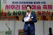 [ 중앙뉴스미디어 ] 양평군 서종면은 지난 11일 서후리 마을회관 일원에서 ‘제3회 서후리 문화예술축제 및 탁구장 개관식’을 성황리에 개최했다. 이날 행사에는 홍주표 서종면장과 박명숙·이혜원 경기도의회 의원, 지역 기관·단체장, 평생학습센터 회원, 주민 등 200여 명이 참석해 마을의 문화와 소통이 어우러진 뜻깊은 시간을 가졌다. 행사에서는 평생학습센터 회원들이 준비한 다양한 작품 전시와 공연이 진행되며, 주민들의 재능과 열정을 나누는 무대가 마련됐다. 이어 진행된 탁구장 개관식에서는 새롭게 조성된 생활체육 공간을 둘러보며, 향후 마을 공동체의 건강한 여가활동 거점으로서의 역할에 대한 기대를 나눴다. 홍주표 서종면장은 “주민 여러분이 함께 준비한 문화예술축제와 탁구장 개관은 서종면 공동체의 또 다른 도약을 상징한다”며, “앞으로도 주민이 주도하는 생활문화와 건강한 여가문화가 자리 잡을 수 있도록 지속적인 지원을 아끼지 않겠다”고 밝혔다. 한편, 이번 행사는 지역 주민의 참여로 이뤄진 생활문화 축제이자 건강한 공동체 회복의 장으로, 문화와 체육이 조화를 이루는 서종면의 새로운 지역 축제로 평가받고 있