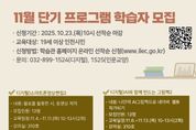 [ 중앙뉴스미디어 ] 인천광역시교육청평생학습관은 오는 11월 운영되는 단기 프로그램의 수강생을 모집한다. 이번 프로그램은 AI(인공지능)·디지털 활용 능력 강화와 인문소양 증진을 주제로 시민들이 짧은 기간 내 배움을 얻을 수 있도록 기획됐다. 운영 강좌는 ▲스마트폰영상편집2 ▲AI(인공지능)와 함께 만드는 그림책2 ▲AI(인공지능)를 활용한 작사·작곡하기2 ▲(시니어) 연말연시는 숏츠와 함께 영상 카드 만들기 ▲한국미술 시대를 잇다: 전통에서 발견하는 현대 등 5개다. 디지털 역량 강좌 4개는 급변하는 환경에 대응해 시민의 정보 활용 능력을 높이는 데 중점을 두었으며, 인문교양 강좌는 전통과 현대미술을 잇는 인문학적 접근을 통해 문화 감수성을 높이는 기회를 제공한다. 수강 신청은 10월 23일 오전 10시부터 평생학습관 누리집에서 가능하며, 자세한 사항은 공지사항에서 확인하거나 평생교육부로 문의하면 된다. [뉴스출처 : 인천시교육청]