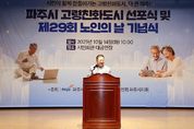[ 중앙뉴스미디어 ] 파주시는 지난 14일 파주시민회관 대공연장에서 ‘제29회 노인의 날 기념행사 및 세계보건기구(WHO) 인증 고령친화도시 선포식’을 성황리에 개최하고, 고령사회에 대응하는 파주시 복지정책 방향과 세대 간 공감의 문화를 확산하기 위한 뜻깊은 자리를 마련했다. 이번 행사는 김경일 파주시장을 비롯해 박대성 파주시의회 의장, 경기도 및 파주시의원, 노인 관련 유관기관장 등 400여 명이 참석해 시민 모두가 행복한 고령친화도시를 만들어가겠다는 의지를 다졌다. 이날 행사에서는 노인복지 유공자 54명에 대한 표창 수여와 함께 고령친화도시 선포, 축하공연 등이 이어져 풍성한 볼거리를 선사했다. 김경일 파주시장은 “파주시는 세계보건기구(WHO)로부터 고령친화도시로 공식 인증받은 것을 계기로, 어르신이 존중받고 시민 모두가 행복한 도시를 만들겠다”라며 “앞으로도 노인복지 증진과 세대 통합을 위한 다양한 정책 실현을 통해 파주시민 모두가 ‘파주에 살기를 참 잘했다’라고 말할 수 있도록 최선을 다하겠다”라고 밝혔다. 향후 파주시는 관내 노인 관련 유관단체와 적극 협력하여 어르신의 목소리에 귀 기울이고