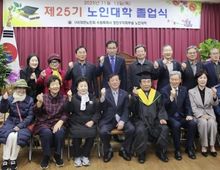 [ 중앙뉴스미디어 ] 지난 11월 13일, 대한노인회 수원시장안구지회 부설 노인대학 제25기 졸업식이 장안구지회 3층 대회의실에서 열렸다. 이번 행사는 (사)대한노인회 수원시장안구지회 주관으로 제25기 졸업생 58명과 지회 임원 20여 명을 포함해 총 80여 명이 참석했으며, 졸업장 수여 및 모범졸업생 시상 등의 식순으로 진행됐다. 수원시 장안구지회 노인대학은 어르신들의 평생학습과 사회참여 확대를 위해 다양한 교양 및 여가 프로그램을 운영하고 있으며, 올 한 해에도 지역 어르신들의 활발한 참여로 큰 호응을 얻었다. 이일희 장안구청장은 이날 행사에 참석해 졸업생들을 격려하며 “노인대학을 통해 배우는 즐거움을 이어오신 졸업생 여러분께 진심으로 축하와 존경을 전한다”며 “앞으로도 어르신들의 지혜와 열정이 지역사회의 큰 힘이 되길 바란다”고 전했다.