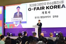 [ 중앙뉴스미디어 ] 중소기업의 국내 판로 확대와 해외 수출을 지원하는 대한민국 최대의 수출전문 전시회 ‘제28회 대한민국우수상품전시회(G-FAIR KOREA 2025)’가 30일 고양 킨텍스에서 개막했다. 올해로 28회를 맞은 ‘지페어 코리아(G-FAIR KOREA) 2025’ 개막식에는 김대순 경기도 행정2부지사를 비롯해 심홍순 도의회 미래위 부위원장과 고은정 경제노동위원장, 방세환 광주시장, 김현곤 경과원장 등 20여 명이 참석했다. 미국 출장중인 김동연 경기도지사를 대신해 개회를 선언한 김대순 2부지사는 “대한민국 경제의 새로운 성장축으로 도약하는 경기북부의 중심에 지페어가 항상 함께 해왔다”며 “이번 전시회를 통해 기업과 바이어가 지속 가능한 파트너십으로 발전하기를 기대한다”고 말했다. 개막식에서는 참가기업 중 상위 30개 사의 우수제품을 선정해 시상하는 지페어 어워즈 시상식도 동시에 진행됐다. 올해로 9회째 참가하는 ㈜한국미라클피플사는 비건 인증과 독일 더마테스트를 획득한 친환경 캡슐세탁세제를 선보이며 경기도지사상을 수상했다. 이번 지페어 코리아는 ‘Buy Better, Live Bett