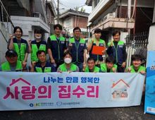 [ 중앙뉴스미디어 ] 안양도시공사는 지난 13일 사회공헌단체인 사랑의 집수리와 동안구 비산동의 안양시장애인인권센터를 찾아 집수리 봉사활동을 실시했다고 15일 밝혔다. 이날 공사 직원 12명은 센터 내부의 ▲천장 벽지 철거 ▲곰팡이 제거 ▲짐 정리 등 쾌적한 환경 조성을 위한 작업에 구슬땀을 흘렸다. 김경수 사장은“앞으로도 지역사회와 함께하는 다양한 사회공헌 활동을 지속할 예정”이라며, “특히 취약계층의 주거환경 개선 등 따뜻한 공동체 문화를 조성하는 데 노력하겠다”고 전했다. 한편, 공사는 지난 2011년부터 사랑의 집수리와 업무협약을 맺고 꾸준히 관내 취약계층 주거환경 개선에 기여해왔으며, 가평군 수해복구 지원 등 지역사회와 함께하는 사회공헌 활동을 꾸준히 이어가고 있다.