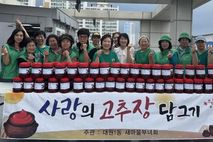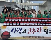 [ 중앙뉴스미디어 ] 오산시 대원1동 새마을부녀회는 지난 9월 16일 대원1동 행정복지센터를 방문해 지역 내 어려운 이웃들을 위해 직접 만든 고추장 80통을 전달했다고 밝혔다. 이번에 기탁된 고추장은 부녀회 회원들이 전통 방식으로 정성껏 담근 것으로, 깨끗한 재료와 이웃을 향한 따뜻한 마음이 더해져 의미를 더하고 있다. 수제 고추장은 대원1동 행정복지센터를 통해 관내 저소득 취약계층 80가구에 전달될 예정이며, 각 가정에 위로와 희망을 전하는 선물이 될 것으로 기대된다. 심인숙 대원1동 새마을부녀회장은 “작은 정성이지만 이웃들에게 힘이 되고, 모두가 함께하는 따뜻한 공동체를 만드는 데 보탬이 되길 바란다.”고 소감을 밝혔다. 황완순 대원1동장은 “새마을부녀회 회원님들의 따뜻한 마음과 정성이 그대로 느껴지는 귀한 나눔”이라며 “이번 기탁품이 꼭 필요한 분들께 잘 전달되어 지역사회에 큰 희망과 위로가 되길 기대한다.”고 감사의 뜻을 전했다. 이번 나눔은 단순한 물품 전달을 넘어 지역 구성원 간 소통과 협력을 강화하는 계기가 됐으며, 대원1동은 앞으로도 다양한 민관 협력 복지 프로그램을 통해