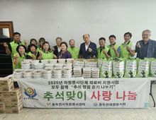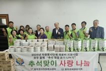 [ 중앙뉴스미디어 ] 동두천 애향동지회는 10월 2일 추석을 맞아 소요동 저소득 취약계층 40가구에 정성이 담긴 명절 음식을 전달했다. 회원들이 직접 만든 전과 나박김치, 도라지 나물무침이 꾸려져 따뜻한 마음과 함께 전해졌다. 이번 나눔은 2025년 동두천시 자원봉사센터 재료비 지원 사업의 일환으로 진행됐으며, 애향동지회 회원들은 음식을 전달하며 이웃들의 안부도 살폈다. 이종철 회장은 “어려운 이웃들에게 나눔을 실천할 기회가 있어 보람되며, 앞으로도 지역사회를 위한 활동을 이어가겠다”라고 말했다. 김승호 소요동장은 “바쁜 일정 속에서도 취약계층을 위해 봉사해 주신 애향동지회원들께 감사드린다”라며 “이번 나눔이 이웃들에게 따뜻한 위로가 되길 바란다”라고 전했다.