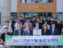 [ 중앙뉴스미디어 ] 포천시의회는 5일 제187회 임시회를 마무리하며 의장과 의회사무과 직원 20여 명이 참석한 가운데 청렴 서약식을 열고, 깨끗하고 투명한 의정활동을 실천할 것을 다짐했다. 이번 서약식은 법과 원칙의 철저한 준수, 금품 및 향응 수수 금지, 공정하고 책임 있는 업무 수행, 권한 남용 및 이권 개입 근절 등을 담은 서약서에 서명하며 청렴 의지를 재확인했다. 임종훈 의장은 “청렴은 시민이 의회를 신뢰하는 가장 중요한 가치”라며, “포천시의회는 이번 서약식을 계기로 스스로를 더욱 엄격히 돌아보고, 공정하고 책임 있는 의정활동을 통해 시민의 기대에 부응하겠다”라고 밝혔다. 포천시의회는 앞으로도 반부패·청렴 문화를 확산시키고, 시민 중심의 책임 있는 의정 구현을 위해 지속적으로 노력할 계획이다.
