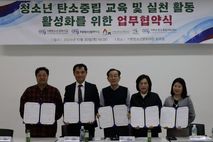 [ 중앙뉴스미디어 ] 가평군 탄소중립지원센터는 30일 가평청소년문화의집에서 가평·설악·조종 청소년문화의집 및 샬롬자유교육공동체 등 4개 기관과 ‘가평군 탄소중립 실천문화 확산을 위한 공동협력 업무협약’을 체결했다. 이번 협약은 지역 내 청소년 중심의 기후환경 실천활동을 활성화하고, 기관 간 협력 네트워크를 구축해 ‘탄소중립 선도도시 가평’ 실현을 위해 추진됐다. 협약에 따라 참여기관들은 △탄소중립 실천 프로그램 및 캠페인 공동 추진 △탄소중립 실천문화 확산 및 관련 정보 공유 △탄소중립 관련 교육 및 홍보 협력 △가평군의 탄소중립 사회로의 이행을 위한 공동과제를 수행하게 된다. 이동준 센터장은 “이번 협약은 청소년이 주도하는 기후실천 네트워크 구축의 의미가 크다”며 “청소년들이 탄소중립의 주체로 성장할 수 있도록 다양한 환경교육과 실천활동을 적극 지원하겠다”고 밝혔다. 가평군 탄소중립지원센터는 앞으로 협약기관과 함께 청소년 대상 기후리더 양성 프로그램 및 탄소중립 캠페인 네트워크 운영 등을 이어갈 예정이다.