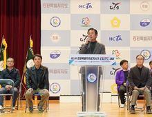 [ 중앙뉴스미디어 ] 용인특례시는 15일 오전 하갈동에 있는 기흥레스피아 축구장에서 (재)용인시시민프로축구단 주최로 ‘용인FC 여성 아마추어 풋살대회(Mireu Queen Cup)’가 열렸다고 16일 밝혔다. 이날 대회에는 21개팀, 20~60대 선수 300여 명이 참가해 열띤 경쟁을 펼쳤다. 선수들은 순수한 아마추어로 20~30대 ‘챌린지부’에서는 퀸즈FC, 동백WFC, 기흥 뉴발FC, 시스터즈 블루, 수지축구단1·2, 기흥 황근발FC, JTW, 블루진FC 등 12개 팀이 불꽃 튀는 승부를 벌였다. 40~60대 ‘레전드부’에서는 시스터즈 블랙, 청바지FC, 기흥 닥공FC, 볼터치FC, 기흥 니발내발FC 등이 그동안 갈고닦은 실력을 뽐냈다. 이상일 시장은 이날 대회장을 찾아 선수들을 격려하고, 2026년 K리그2에 참가하는 용인FC를 향한 응원을 당부했다. 이상일 시장은 “내년에 용인FC가 K리그2에 출전하는데 많은 응원을 해주면 좋은 성적을 거둘 것으로 기대한다. 시민들과 함께하는 구단으로 자리매김할 수 있도록 많은 관심과 응원을 바란다”며 “시장으로서 축구를 비롯해 문화, 예술, 교