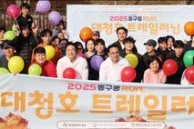 [ 중앙뉴스미디어 ] 대전 동구는 22일 대청호 자연수변공원 일원에서 진행된 ‘2025 동구동런’의 특별편 ‘대청호 트레일러닝’이 성황리에 마무리됐다고 밝혔다. 이날 행사에는 박희조 동구청장을 비롯해 우송대학교·대전보건대학교 관계자 등 100여 명이 참여했으며, 참가자들은 전문 코치와 함께 사전 스트레칭과 워밍업을 마친 뒤 본격적인 러닝 코스에 나섰다. 특히, 대청호 자연수변공원을 출발해 가래울마을·상추마을·대청호자연생태관 등을 경유하는 3.3km 순환 코스를 달리며, 깊어가는 가을 대청호 풍경 속에서 자연을 즐기는 특별한 시간을 가졌다. 러닝 종료 후에는 남녀 상위 3명에 대한 시상과 레크리에이션 프로그램이 이어져 현장의 즐거움을 더했으며, 동부경찰서와 동부소방서, 해병대전우회가 교통 통제와 현장 관리를 지원하며 안전한 행사 진행을 뒷받침했다. 박희조 동구청장은 “동구동런은 누구나 참여해 올바른 러닝 주법을 익히고 건강을 챙길 수 있어 큰 호응을 얻고 있다”며 “앞으로도 내실 있는 프로그램을 통해 ‘건강 동구’를 실현하는 데 최선을 다하겠다”고 말했다. 한편, ‘동구동런’은 매주 화요
