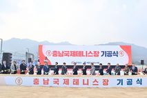 [ 중앙뉴스미디어 ] 충청권 최초 국제 규격 테니스 경기장으로, 2027년 8월 하계세계대학경기대회 테니스 경기를 치를 ‘충남국제테니스장’이 첫 삽을 뜨고 본격 공사에 들어갔다. 도는 24일 내포신도시(홍성군 홍북읍 신경리)에서 김태흠 지사와 체육계 인사 등 800여 명이 참석한 가운데 충남국제테니스장 기공식을 개최했다. 충남국제테니스장은 5만 556㎡의 부지에 시설 면적은 1만 4406㎡이다. 3000석 규모 센터 코트 1면과 1000석 규모 쇼트 코트 1면, 500석 규모 실내 코트 4면 경기 코트 8면, 연습 코트 2면 등 총 16면의 테니스 코트를 갖춘다. 이는 국제 테니스 경기를 치를 수 있는 규모로, 완공을 하면 충남국제테니스장은 ‘충청권 최초 국제 규격 테니스 경기장’ 타이틀을 갖게 된다. 투입 사업비는 국도비 817억 원이다. 도는 충남국제테니스장 건립을 위해 2023년 7월 타당성 조사 및 기본계획 수립 용역에 들어가 2024년 1월 기본계획을 마련했다. 같은 해 9월에는 입찰 공고를 내고, 지난 2월 계룡컨소시엄을 실시설계 적격자로 선정했다.