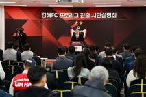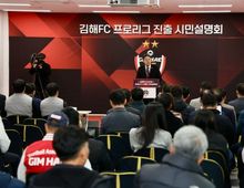 [ 중앙뉴스미디어 ] 2025년 K3리그 우승컵을 들어올린 김해FC2008(이하 김해FC)이 내년 프로리그 진출에 따른 시민설명회를 성황리에 개최했다. 28일 김해종합운동장에서 열린 설명회에는 재단법인 김해FC 이사장인 홍태용 김해시장과 축구협회 임원진과 관계자를 비롯해 김해시 체육회와 유관단체, 시민과 축구팬 200여명이 참석해 설명회장을 가득 메웠다. 현장에 참석하지 못한 시민들은 김해시 공식 유튜브 채널에서 생중계를 시청했다. 김해FC는 구단의 프로리그 진출 배경에 대해 ‘시민 스포츠 문화 요구 충족’과 ‘지역 경제 파급효과 확대’를 통한 구단 발전 선순환 고리 구축이 목적이라고 밝혔다. 중장기 목표로 2030년까지 홈 경기 평균 관중 5,000명, 2035년까지 구단 재정 자립 70% 달성 등을 내세우며 이를 실현하기 위한 구단의 5대 핵심전략인 ‘Iron Project Series’를 구체적으로 설명했다. 또 김해FC의 미래 비전인 ‘축구를 넘어서 김해의 역사와 현재 그리고 미래를 잇는 생활 속 시민구단’에 대해 ▲지자체 예산 의존에서 벗어나 자립하는 구단 ▲단순한 축구팀을