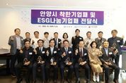 [ 중앙뉴스미디어 ] 안양시는 16일 오전 11시 30분 관내 음식점에서 지역사회와 이웃을 위해 나눔을 실천한 14개 기업을 대상으로 간담회와 함께 ‘착한기업’ 및 ‘이에스지(ESG)나눔기업’ 감사패 전달식을 가졌다. 나눔 실천에 감사의 마음을 전하고 나눔문화를 활성화하기 위한 이번 행사에는 최대호 안양시장과 14개 기업 대표 및 임원진, 구재관 지역사회보장협의체 민간위원장, 김효진 경기사회복지공동모금회 사무처장 등 20여명이 참석했다. 안양시 착한기업은 2년 이상 지속적으로 연평균 1천만원 이상을 기부한 기업으로, 이날 ▲(주)텔레트론 ▲이알케이솔루션(주) 등 2곳이 착한기업 감사패를 받았다. 이에스지(ESG)나눔기업은 지난해 1천만원 이상을 안양시에 기부한 기업으로, 착한기업으로 선정된 2개 기업과 ▲사회복지법인 백우현진복지재단 ▲(주)코스콤 ▲HL홀딩스 주식회사 ▲㈜쿠스코 ▲㈜대현환경 ▲㈜스크린에이치디코리아 ▲㈜벨루션네트웍스 ▲지에스파워(주) ▲디엔에프솔류션 ▲라온디앤씨(주) ▲평촌교통 ▲인창전자(주) 등 14개 기업이 이에스지(ESG)나눔기업 감사패를 받았다. 최대호 안양시장은 “기부는 단순