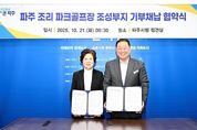 [ 중앙뉴스미디어 ] 파주시는 지난 21일, 조리 파크골프장 조성 부지 기부채납 협약식을 개최해 파크골프장 조성 사업에 첫발을 내디뎠다. 이날 협약식에는 김경일 파주시장과 토지 기부자인 라보배 씨 등 관계자들이 참석했으며, 조리읍 이장단협의회장, 노인회장, 체육회장, 새마을지도자협의회장, 행복나눔협의체회장 등 지역 주요 단체장이 함께해 지역 발전의 의미를 더했다. 이번 협약은 파주 동부권역 주민의 복리 증진과 생활체육 활성화를 위해 추진된 것으로, 라보배 씨가 11,865㎡ 규모의 부지를 파주시에 무상으로 기부채납함에 따라 조리 파크골프장 조성 사업이 본격화될 예정이다. 파주시는 해당 부지를 활용해 9홀 규모의 산악형 파크골프장을 조성할 계획이며, 2026년 상반기 도시관리계획 결정 및 실시계획인가 절차를 마무리하고, 2026년 하반기 착공 및 2027년 3월 개장을 목표로 사업을 추진하고 있다. 토지 기부자 라보배 씨는 “제가 기부한 토지가 시민들의 건강과 삶의 질을 높이는 공간으로 활용된다는 점이 매우 뜻깊고 기쁘다”라며 “조리 파크골프장이 시민들이 즐겁게 모이고 오래도록 사랑받는 장소로 자리