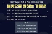 [ 중앙뉴스미디어 ] 동두천시시설관리공단은 오는 11월 1일 동두천자연휴양림에서 가을밤 하늘을 배경으로 별자리와 행성을 함께 관측하는 '천문행사 ‘별빛으로 밝히는 가을밤’'을 개최한다. 이번 행사는 시민이 자연 속에서 직접 천체를 관측하며 과학문화의 즐거움을 체험하고, 가족 단위 방문객에게는 휴식과 소통의 시간을 제공하기 위해 마련됐다. 행사는 오후 2시부터 8시까지 자연휴양림 어울림동 세미나실 및 잔디마당 일원에서 진행된다. 낮에는 태양 전용 망원경을 활용한 태양 관측 체험, 저녁에는 전문 강연과 함께 달·행성·별자리 관측 프로그램이 운영된다. 또한 시민 참여형 이벤트인 ‘별자리 퀴즈’도 열려 참가자들이 과학을 보다 쉽고 흥미롭게 접할 수 있도록 구성됐다. 이종진 동두천시시설관리공단 이사장은‘별빛으로 밝히는 가을밤’은 가족과 함께 별을 보며 자연의 아름다움과 과학의 신비로움을 동시에 느낄 수 있는 뜻깊은 행사”라며“앞으로도 시민이 함께 참여할 수 있는 ESG형 과학문화 프로그램을 지속적으로 추진하겠다”라고 밝혔다.