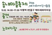 [ 중앙뉴스미디어 ] 동두천시 송내동 주민자치위원회는 오는 11월 2일 오후 2시부터 지행역 1번 출구 메타세콰이아길에서 ‘2025 송내마을축제’를 개최한다고 밝혔다. 이번 축제는 주민자치센터 프로그램 수강생을 비롯해 지역 학교, 동아리, 학원 등 다양한 주민이 참여해 주민자치 활성화와 지역 문화·예술 교류의 장을 마련하고자 기획됐다. 행사 당일에는 송내동 주민 노래자랑, 주민자치 프로그램 발표회·전시회, 초청공연, 체험부스, 벼룩시장, 먹거리 마당 등 다채로운 프로그램이 진행된다. 특히 주민이 직접 참여하는 노래자랑과 맷돌체조, 트롯고고장구, 실버태권도 등 7개 팀의 프로그램 발표회가 마련돼, 지역 주민들이 그동안 갈고닦은 실력을 선보일 예정이다. 또한 도자기 만들기, 팽이 꾸미기, 만년도장 만들기 등 가족 단위로 즐길 수 있는 체험부스도 함께 운영된다. 이번 축제는 송내동 주민의 화합과 자긍심을 높이는 것은 물론, 주민자치센터 프로그램 홍보와 신규 수강생 유치에도 도움이 될 것으로 기대된다. 아울러 지역 소상공인과 시민이 함께 참여하는 벼룩시장도 열려 지역경제 활성화에도 기여할 전망이다. 행사를