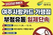 [ 중앙뉴스미디어 ] 여주시는 지역화폐인 여주사랑카드의 부정유통 근절을 위해 지난 11월 26일부터 오는 12월 10일까지 집중 단속에 나선다고 밝혔다. 주요 단속 대상은 ▲ 물품의 판매 또는 용역의 제공 없이 지역화폐를 수취·환전하는 행위 ▲ 실제 매출금액 이상의 거래를 통하여 지역화폐를 수취·환전하는 행위 ▲ 가맹점이 등록 제한업종을 영위하는 경우 ▲결제를 거부하거나 다른 결제 수단에 비해 불리하게 대우하는 행위 ▲기타 단속이 필요성이 있다고 인정되는 경우 등이다. 이번 일제 단속은 가맹점 데이터 목록을 참고 및 주민 신고 등을 토대로 의심되는 현장을 방문해 확인하는 방식으로 진행된다. 여주시 일자리경제과 관계자는 “지역화폐 제도의 지속가능성, 신뢰성을 확보하고 지역 자금의 역외유출 방지를 위해서는 여주사랑카드 사용자와 가맹점주 모두 함께 힘을 합쳐야 건전한 유통 문화를 만들어갈 수 있다”협조를 당부했다. 부정유통 적발 시 여주사랑카드 가맹점 등록취소, 관계 법령에 따라 최대 2,000만원 이하의 과태료가 부과될 수 있으며, 위반행위 조사를 거부·방해 또는 기피하는 경우에도 최대 500만원 이하