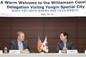 [ 중앙뉴스미디어 ] 이상일 용인특례시장이 13일 용인의 자매도시인 미국 텍사스주 윌리엄슨카운티의 대표단과 만나 양 도시의 발전을 위한 협력 방안을 논의했다. 이날 시청 접견실에서 이 시장은 스티븐 스넬(Steven Snell) 윌리엄슨카운티장과 러스 볼즈(Russ Boles) 윌리엄슨카운티 커미셔너, 데이브 포터(Dave Porter) 윌리엄슨카운티 경제개발파트너십 전무이사를 만나 경제와 산업, 교육 등 다양한 분야에 대해 의견을 나눴다. 이날 이상일 시장을 만난 스티븐 스넬 윌리엄슨카운티장은 전임자인 빌 그래벨(Bill Gravell) 윌리엄슨카운티장에 이어 지난 4월 신임 윌리엄슨카운티장으로 취임했다. 이상일 시장은 “양 도시는 도시 이름을 붙인 명예도로명을 부여하면서 우정을 쌓고, 교류협력을 활발하게 하고 있다”며 “윌리엄슨카운티 대표단과 텍사스 주립대학교 관계자들이 용인에 있는 단국대학교 관계자를 만나 협력관계 구축에 대한 논의를 진행하는 것으로 알고 있는 데 양 도시에 있는 대학이 교류하는 것은 매우 뜻 깊은 일”이라고 말했다. 이 시장은 “윌리엄슨카운티에는 첨단산업 관련 기업들의 입주가