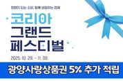 [ 중앙뉴스미디어 ] 광양시는 전국 단위 소비진작 행사인 ‘코리아 그랜드 페스티벌(Korea Grand Festival)’ 기간(2025. 10. 29.~11. 9.) 동안 광양사랑상품권 할인율을 한시적으로 18%로 상향한다고 밝혔다. ‘코리아 그랜드 페스티벌’은 국무조정실, 기획재정부, 행정안전부, 산업통상자원부와 행정안전부, 문화체육관광부 등 관계 부처가 공동으로 추진하는 국가대표 소비축제다. 행사 기간에는 △지역사랑상품권 및 디지털온누리상품권 특별할인 △상생소비복권 (20억 원 규모) 신규 시행 △농·축·수산물·생필품 특별할인 △숙박쿠폰 발급 및 문화유산 무료 개방 등 국민 누구나 참여할 수 있는 다양한 소비 혜택이 제공된다. 이 기간 광양시는 총 40억 원 규모의 광양사랑상품권을 발행하며, 기본 13% 후(後) 캐시백에 5%를 추가해 총 18% 혜택(월 최대 12만 6천 원 적립)을 제공한다. 단, 예산 소진 시 조기 종료될 수 있으며 행사 종료 후에는 기존 13% 할인율로 조정된다. 시는 이번 특별할인을 통해 시민들이 실질적인 소비 혜택을 누리고, 지역 내 자금의 선순환이 촉진