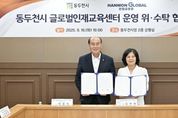 [ 중앙뉴스미디어 ] 동두천시는 지난 16일 시청 2층 상황실에서 글로벌인재교육센터 운영 수탁기관으로 선정된 ㈜한원글로벌과 운영 위·수탁 협약을 체결했다. 수탁기관 ㈜한원글로벌은 인천광역시에 위치한 교육 전문기관으로 ▲연수구 국제언어체험센터 위탁 운영 ▲ELTIS(국제학생 영어 능력 시험) 운영 등 국제언어 교육 경험을 풍부하게 보유하고 있다. 이번 협약으로 2025년 9월부터 2028년 8월까지 3년간 동두천시민의 글로벌 역량 강화를 위한 다양한 교육 사업을 추진할 계획이다. 협약에 따라 동두천시는 ㈜한원글로벌에 ▲외국어 학습 및 체험형 융합교육 프로그램 개발·운영 ▲일반·다문화 학생이 함께하는 프로그램 기획·운영 ▲시민 글로벌 역량 강화 교육 등 센터 운영 및 관리 전반을 위탁한다. 박형덕 시장은 “이번 협약을 통해 글로벌인재교육센터가 지역 학생들에게 국제적 경험을 제공하고 미래 인재로 성장하는 발판이 되길 기대한다”라며 “학생과 시민이 함께 참여할 수 있는 다채로운 프로그램으로 글로벌 경쟁력을 높여 나가겠다”라고 밝혔다. 김한경 대표도 “동두천시와 긴밀히 협력해 학생들이 세계로 나아갈 수 있는