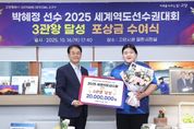[ 중앙뉴스미디어 ] 고양특례시가 지난 16일 ‘2025 국제역도연맹(IWF) 세계역도선수권대회’ 여자 86kg 이상급 3관왕에 오른 박혜정 선수에게 포상금을 수여하며 그간의 노고를 격려했다. 이날 수여식에는 이동환 고양특례시장을 비롯해 교육문화국장, 체육정책과장, 지도자가 참석했으며, 박혜정 선수에게는 격려 포상금 2,000만 원이 수여됐다. 박혜정 선수는 지난 10월 3일부터 12일까지 노르웨이 푀르데에서 열린 세계역도선수권대회에서 인상 125kg, 용상 158kg, 합계 283kg을 들어 올리며 세 부문 모두 금메달을 차지, 대한민국의 유일한 금메달리스트이자 3관왕에 올랐다. 이번 우승은 2024년 바레인 세계역도선수권대회 2위의 아쉬움을 딛고 재기한 값진 성과로, 2023년 리야드 대회에 이어 두 번째 세계선수권 챔피언 타이틀을 거머쥔 쾌거다. 또한 박혜정 선수는 올해 8월 중국 푸저우에서 열린 ‘동아시아역도선수권대회’와 ‘한·중·일 국제역도대회’에서 연이어 3관왕을 차지한 데 이어, 이번 세계선수권에서도 세 부문을 석권하며 올해만 세 차례 국제대회 3관왕의 위업을 달성했다. 이