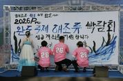 [ 중앙뉴스미디어 ] 완도군은 ‘청정 완도 가을 섬 여행’ 행사 마지막 날인 10월 26일 해변공원에서 ‘2026 Pre 완도국제해조류박람회’ 성공 개최를 기원하는 퍼포먼스를 진행했다. 2026 Pre완도국제해조류박람회는 완도의 대표 해양자원인 해조류와 전복을 주제로 2026년 5월 2일부터 7일까지 6일간 해변공원 일원에서 열리며 국제 심포지엄, 수출 상담회 등 다양한 프로그램이 진행될 예정이다. 이날 보여준 퍼포먼스는 ‘해조류, 전복하면 완도여라! 2026 Pre 완도국제해조류박람회 성공 개최를 기원합니다!’라는 문구를 캘리그라피로 힘차게 써 내려갔다. 이범우 완도부군수와 지민, 최정욱 완도군의회 의원, 어린이가 무대에 올라 응원의 글을 추가해 박람회 성공 개최를 기원하는 메시지가 풍성하게 완성됐다. 퍼포먼스 종료 후 박람회 추진위원회 위원들과 내빈들은 무대에 올라 박람회 성공 개최를 기원하는 구호를 함께 힘차게 외쳤다. 군 관계자는 “모두가 한마음으로 완도국제해조류박람회가 성공적으로 개최되길 기원하는 시간이어서 뜻깊었다”면서 “해조류의 가치와 완도의 위상을 드높일 수 있도록 박람회