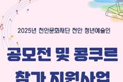 [ 중앙뉴스미디어 ] 천안문화재단은 내달 3~ 5일까지 ‘천안 청년예술인 공모전 및 콩쿠르 참가 지원사업’ 참여자를 모집한다고 15일 밝혔다. 재단은 청년예술인의 문화예술 활동 영역을 확장하고 지원하기 위해 올해부터 공모전과 콩쿠르 참가 활동비 지원사업을 추진하게 됐다. 지원 대상은 천안시에 거주하거나 천안시 소재의 대학교 예술학과 재학 또는 졸업한 만 19세 이상 만 39세 이하의 청년예술인으로, 3년 이상 예술활동 실적이 있으면 신청할 수 있다. 신청은 재단 누리집에서 신청서를 내려받아 작성 후 증빙 서류와 함께 전자우편으로 제출하면 된다. 선정 결과는 심의를 거쳐 내달 19일 재단 누리집에 공지할 예정이다. 자세한 사항은 재단 누리집을 참고하거나 전화로 문의하면 된다. [뉴스출처 : 충청남도 천안시]